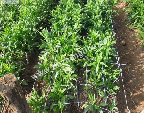 水平方向鋪設(shè)時,幾層的植物支架網(wǎng)是種植時很有效的保持間距的導引裝置。在植物繼續(xù)生長時,一層加一層的網(wǎng)可以加裝在支架上。這種方法已被許多的花農(nóng)采用,特別對栽種長莖花木例如菊花、小蒼蘭、石竹等為常用。